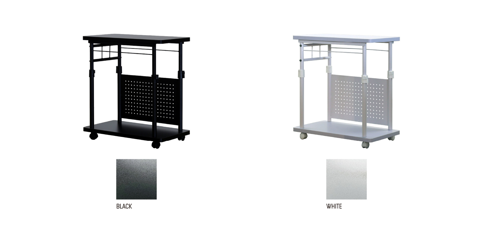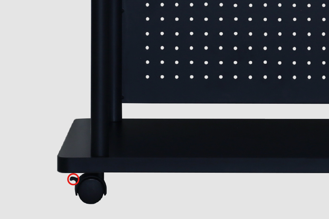 組み立ての際に、ロック機能付きキャスター(2個)と通常のキャスター(2個)の取り付け位置を換え使いやすい位置で固定できるようになっています。
