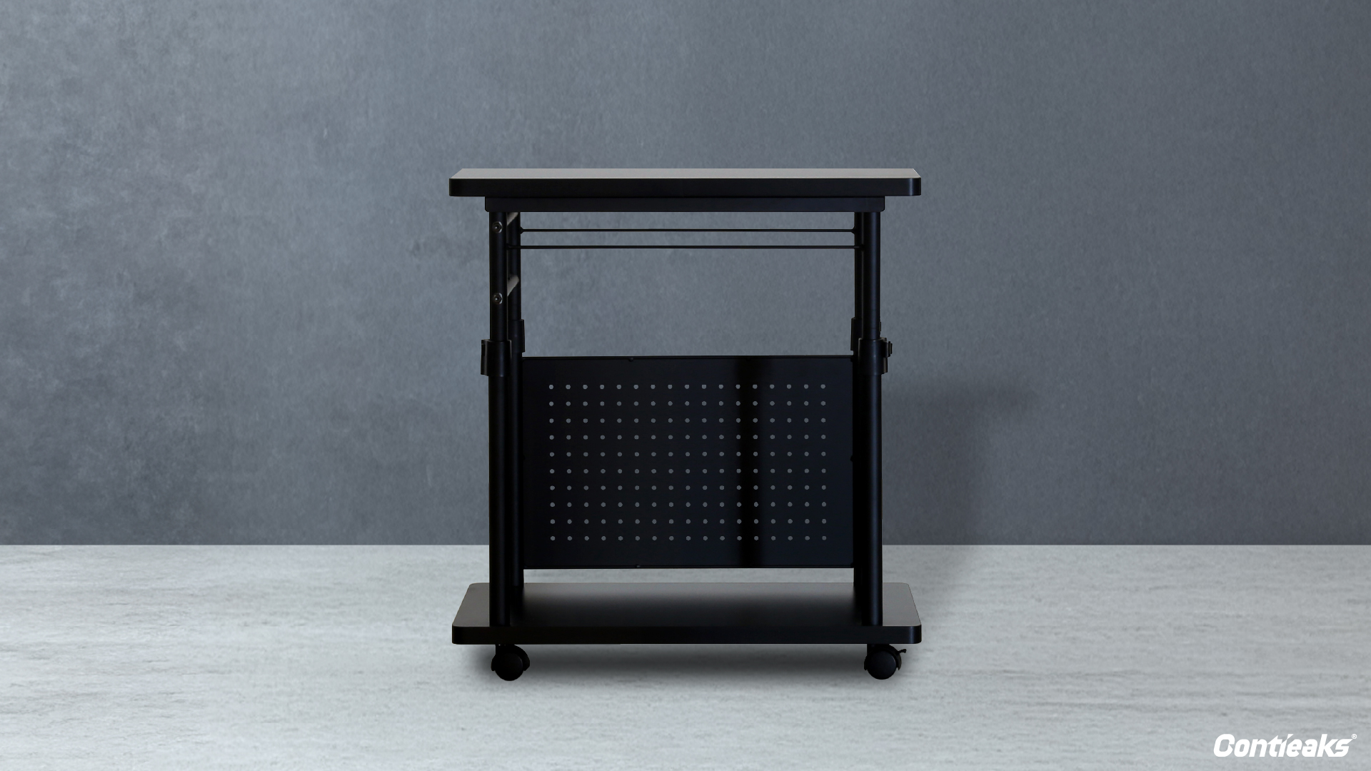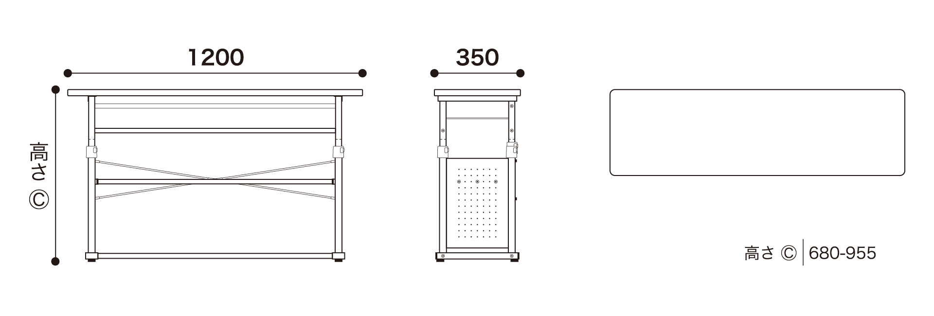 天板の高さは、680mm-955mmまでの範囲で無段階に調整でき、お好みの高さにすることが可能です。