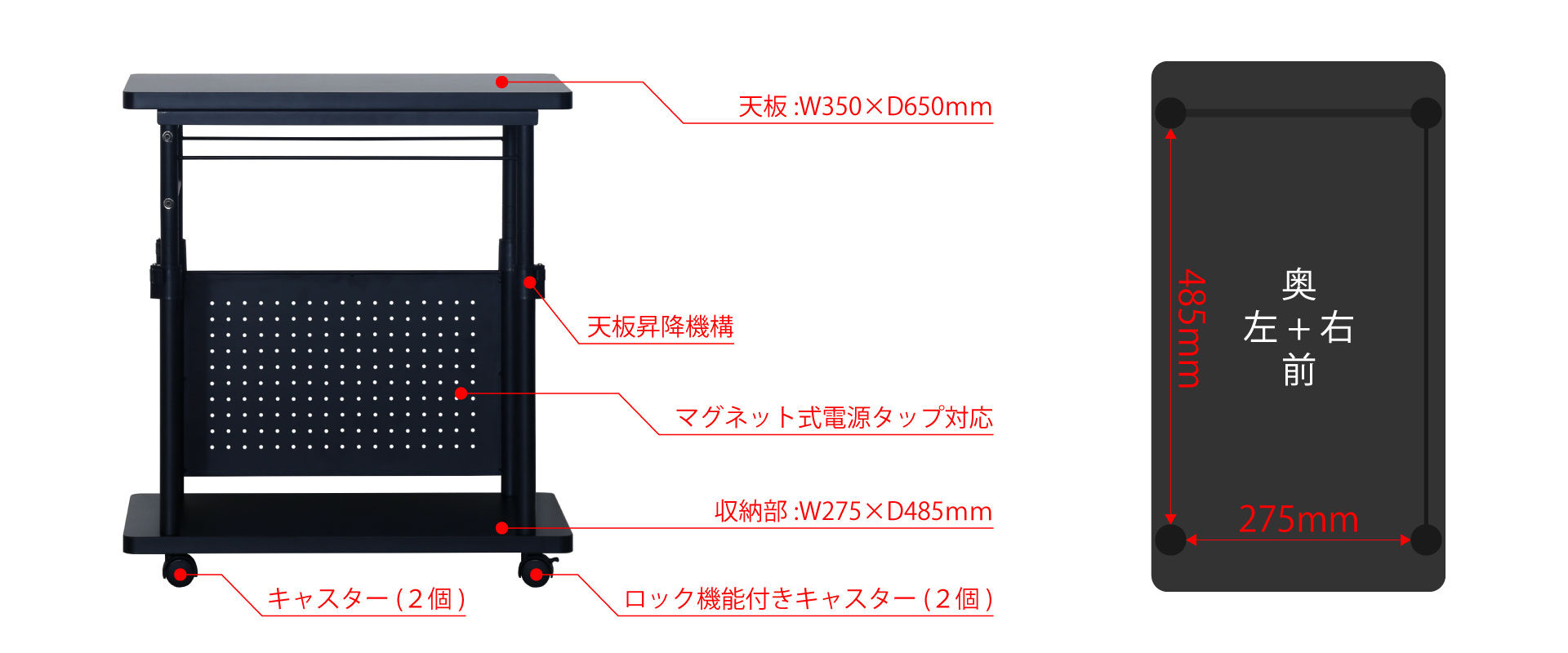 | ワゴン内寸 | W275×D485×H555-830mm |