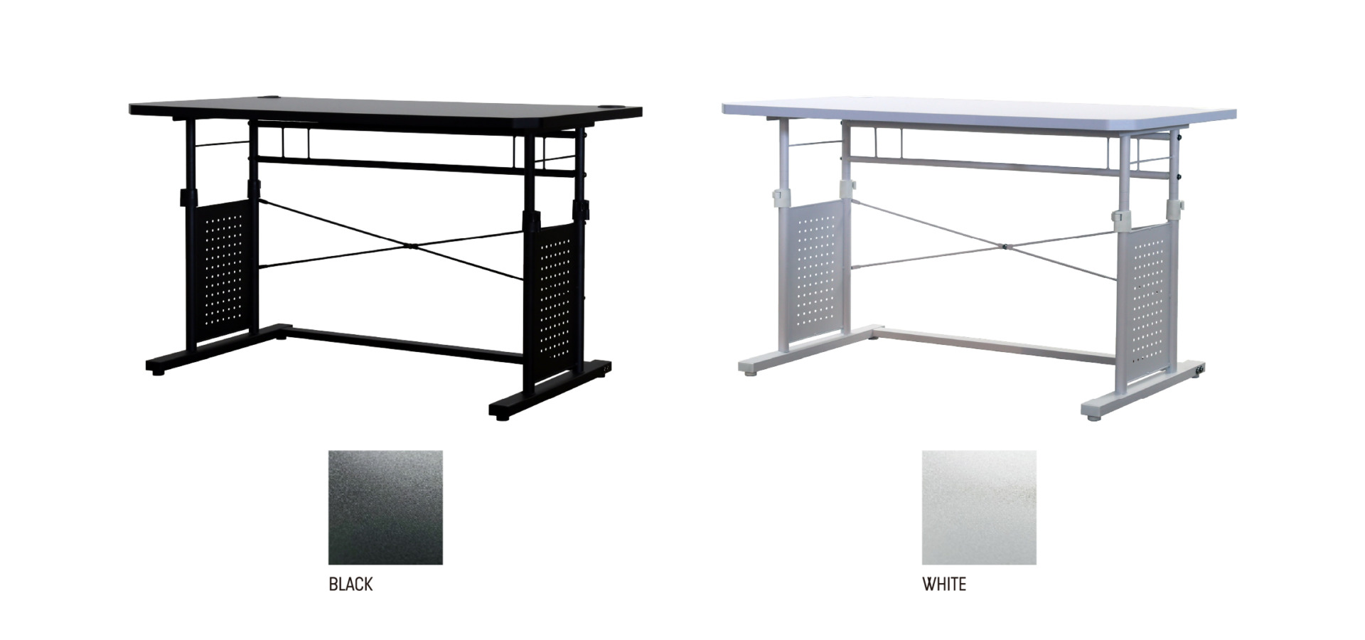 天板の高さは、680mm-955mmまでの範囲で無段階に調整でき、お好みの高さにすることが可能です。