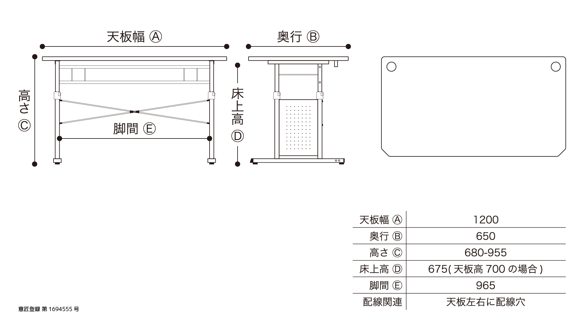 | デスク寸法 | W1200×D650×H680-955mm |