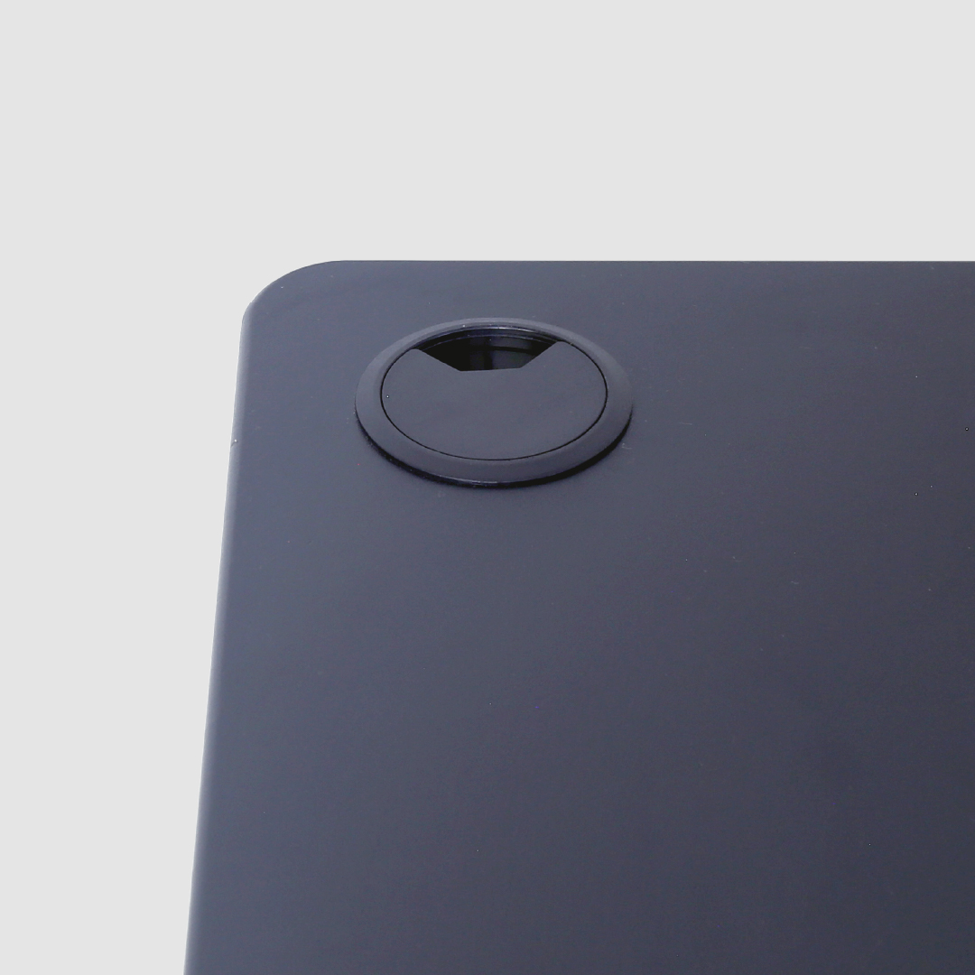 天板奥の左右には、デバイスやPCのケーブルをデスク下に落とせるコード穴をご用意。