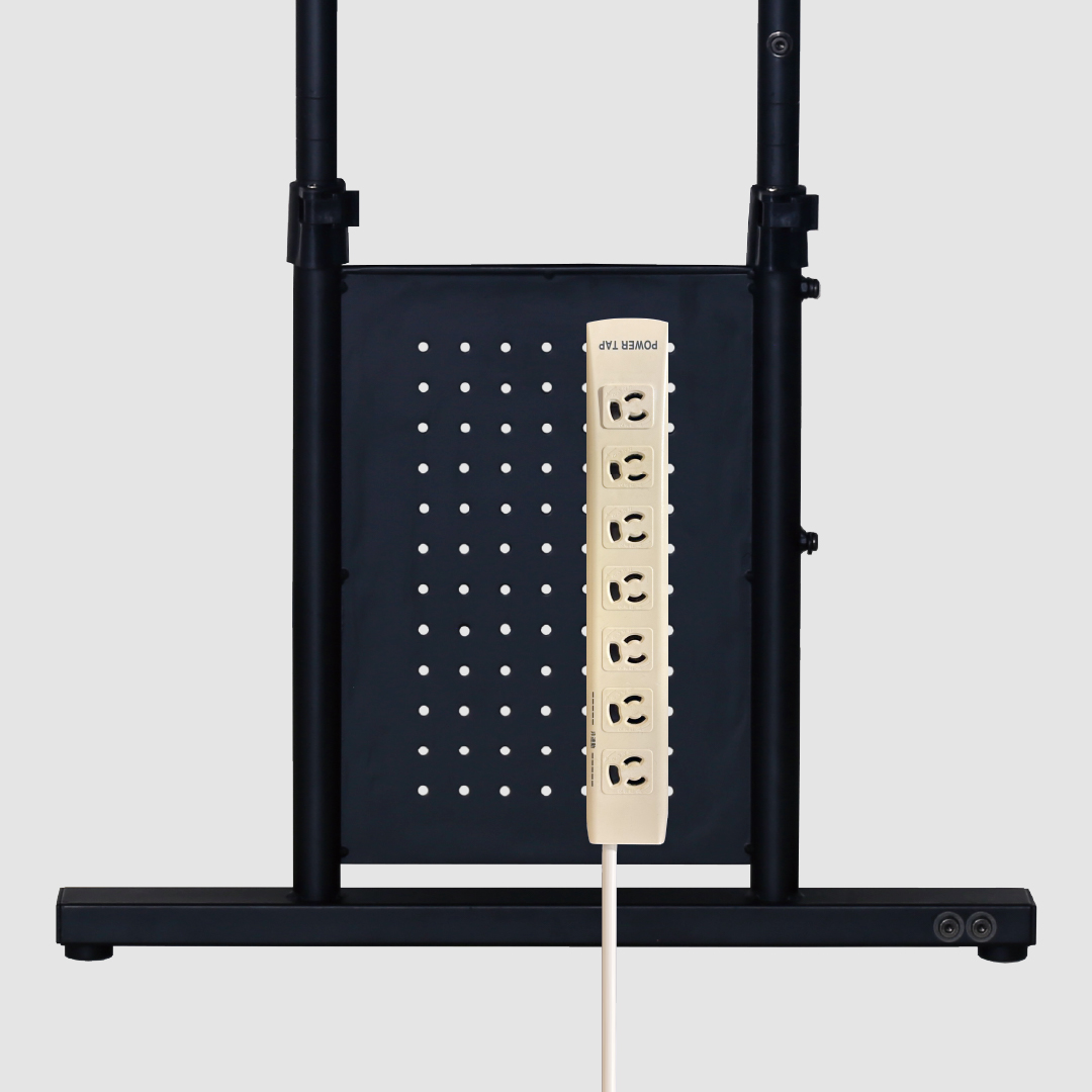スチールサイドパネルには、マグネット式の電源タップが取り付けることができます。