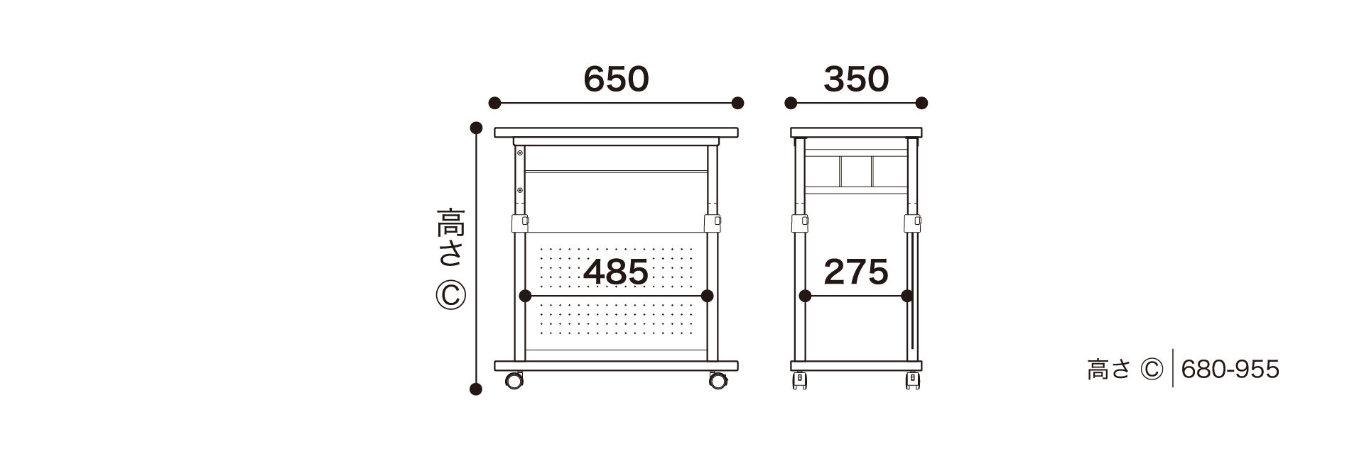 | ワゴン寸法 | W350×D650×H680-955mm |