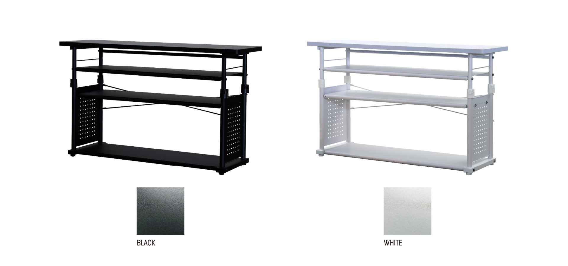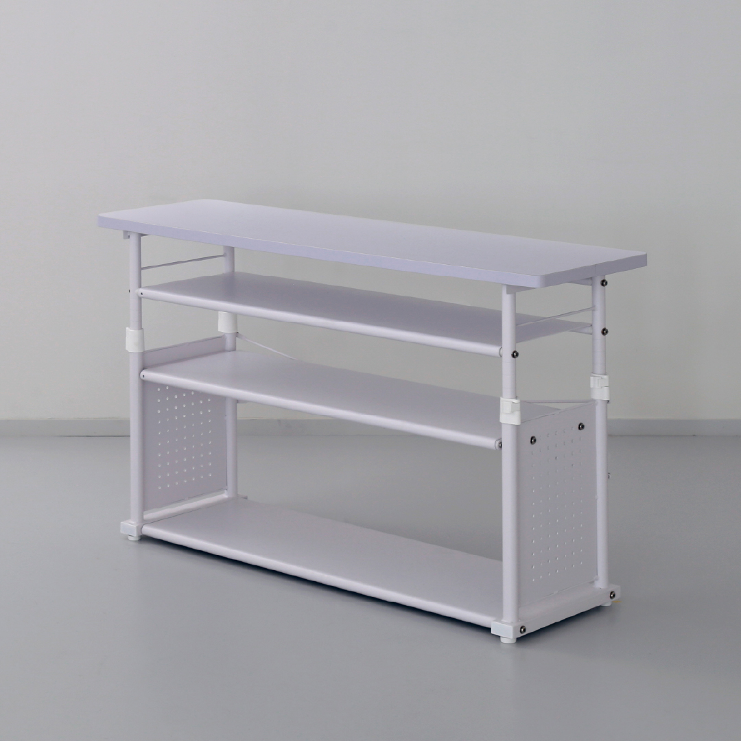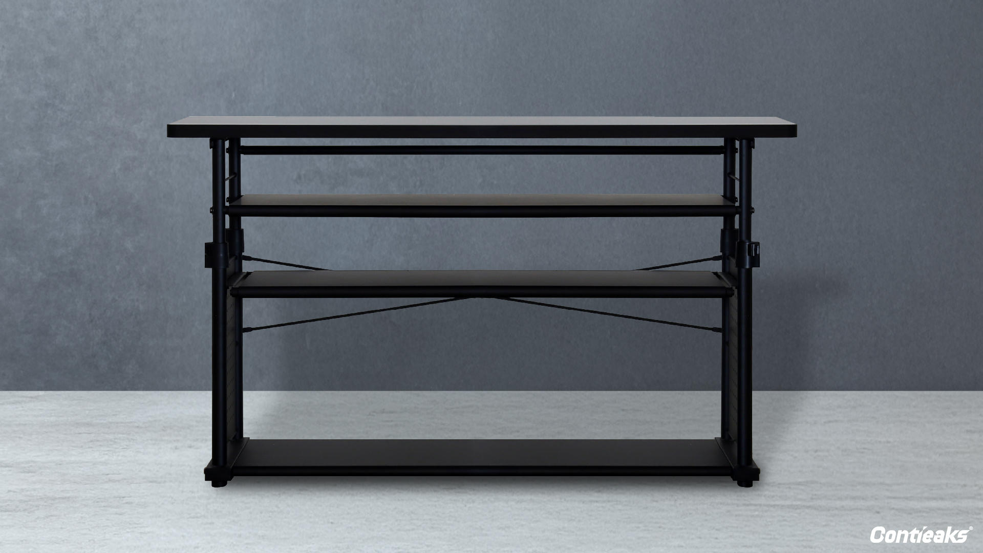 天板の高さは、680mm-955mmまでの範囲で無段階に調整でき、お好みの高さにすることが可能です。