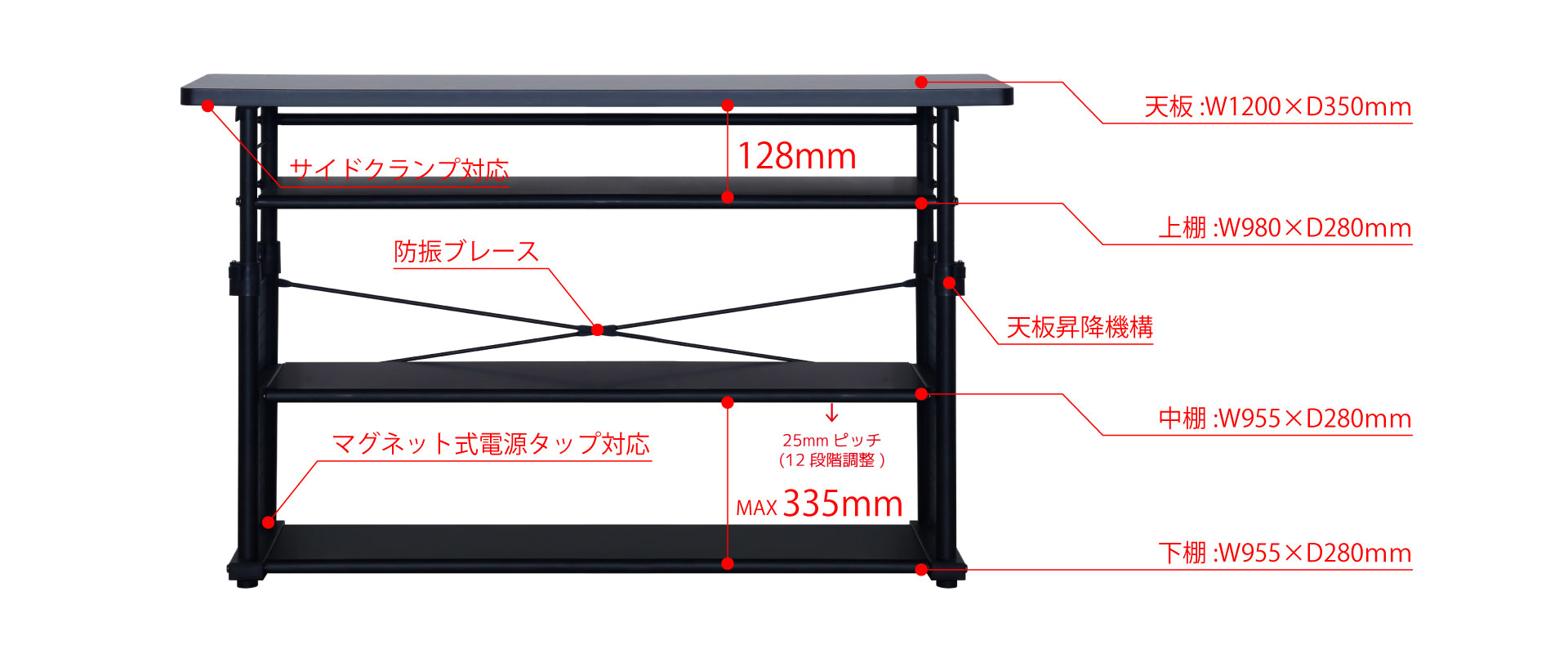天板厚 / 25mm(モニターアーム・マイクアーム対応)