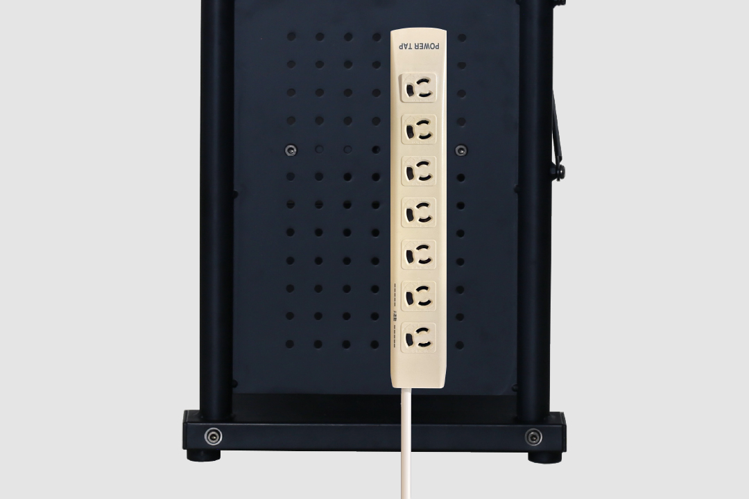スチールサイドパネルには、マグネット式の電源タップが取り付けることができます。