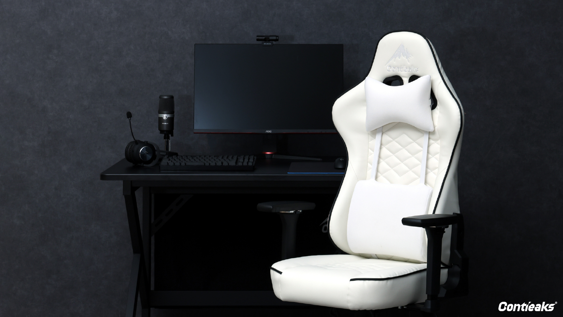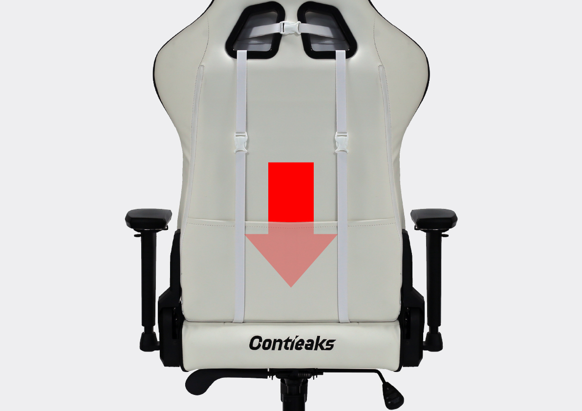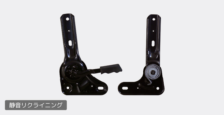 配信時や長時間使用した際、リクライニング部品のキシミ音がマイクに入り問題になる課題を緩和するためにギアとスプリングの機能を左右分離させた静音金具を独自に採用。