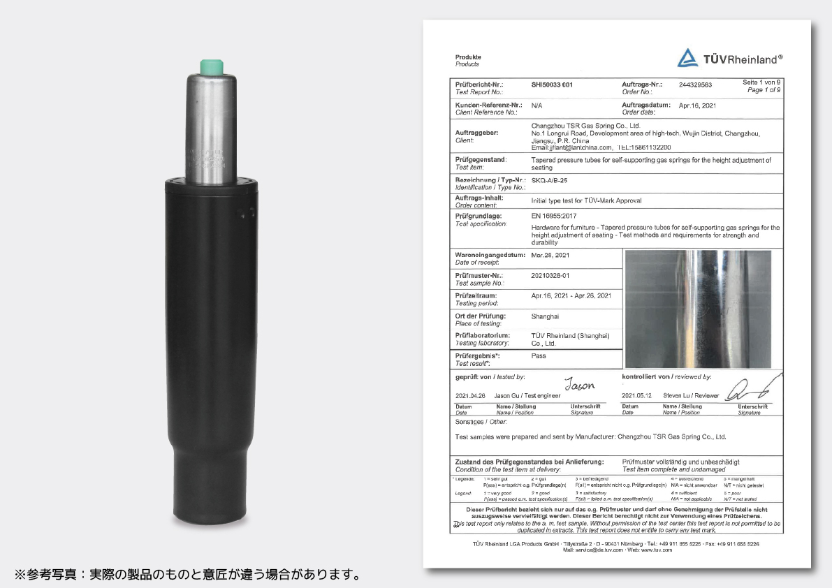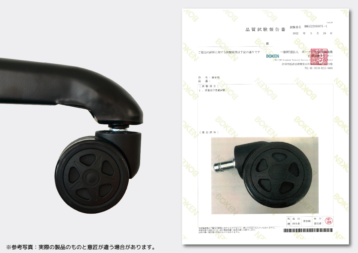 張地、樹脂パーツ、アームレスト、ガスシリンダー、キャスターベース、キャスターに至るまでBIFMA規格の品質チェックを行っています。