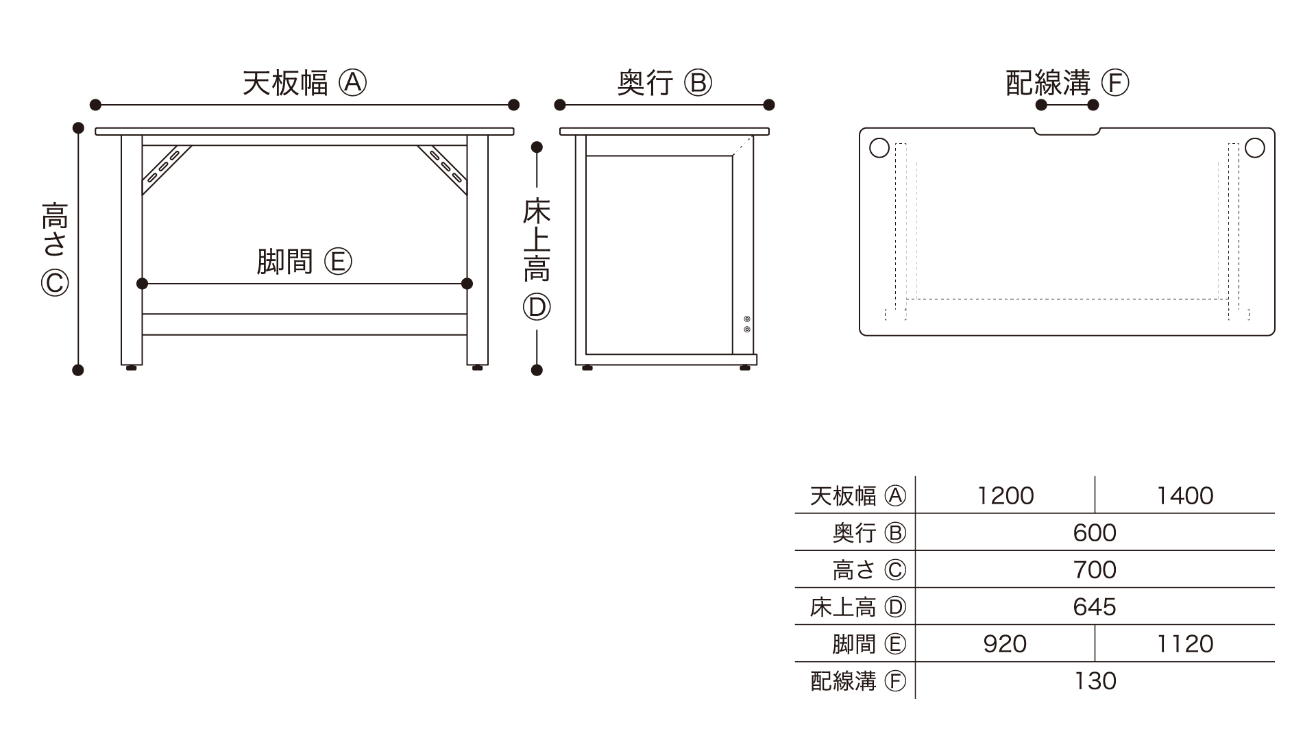 | デスク寸法 | W1200×D600×H700mm W1400×D600×H700mm |
