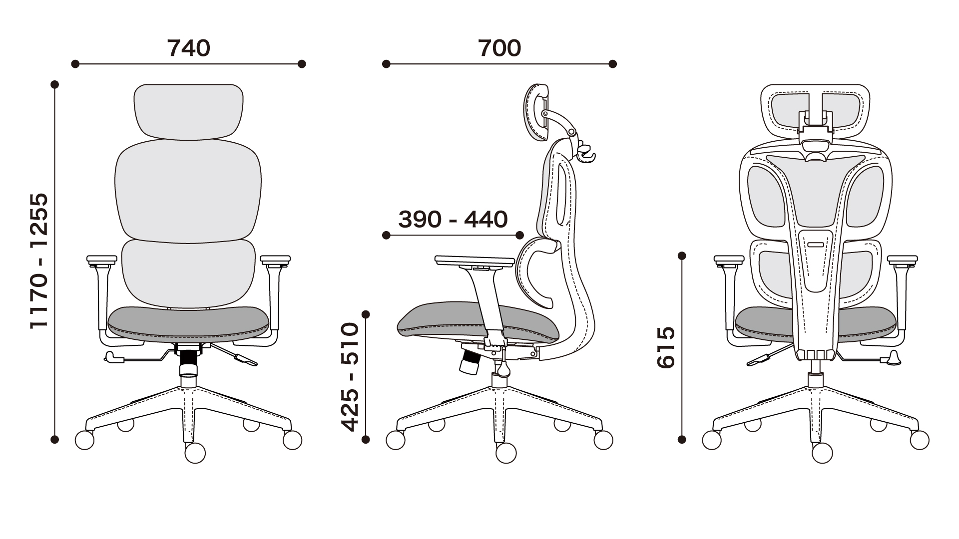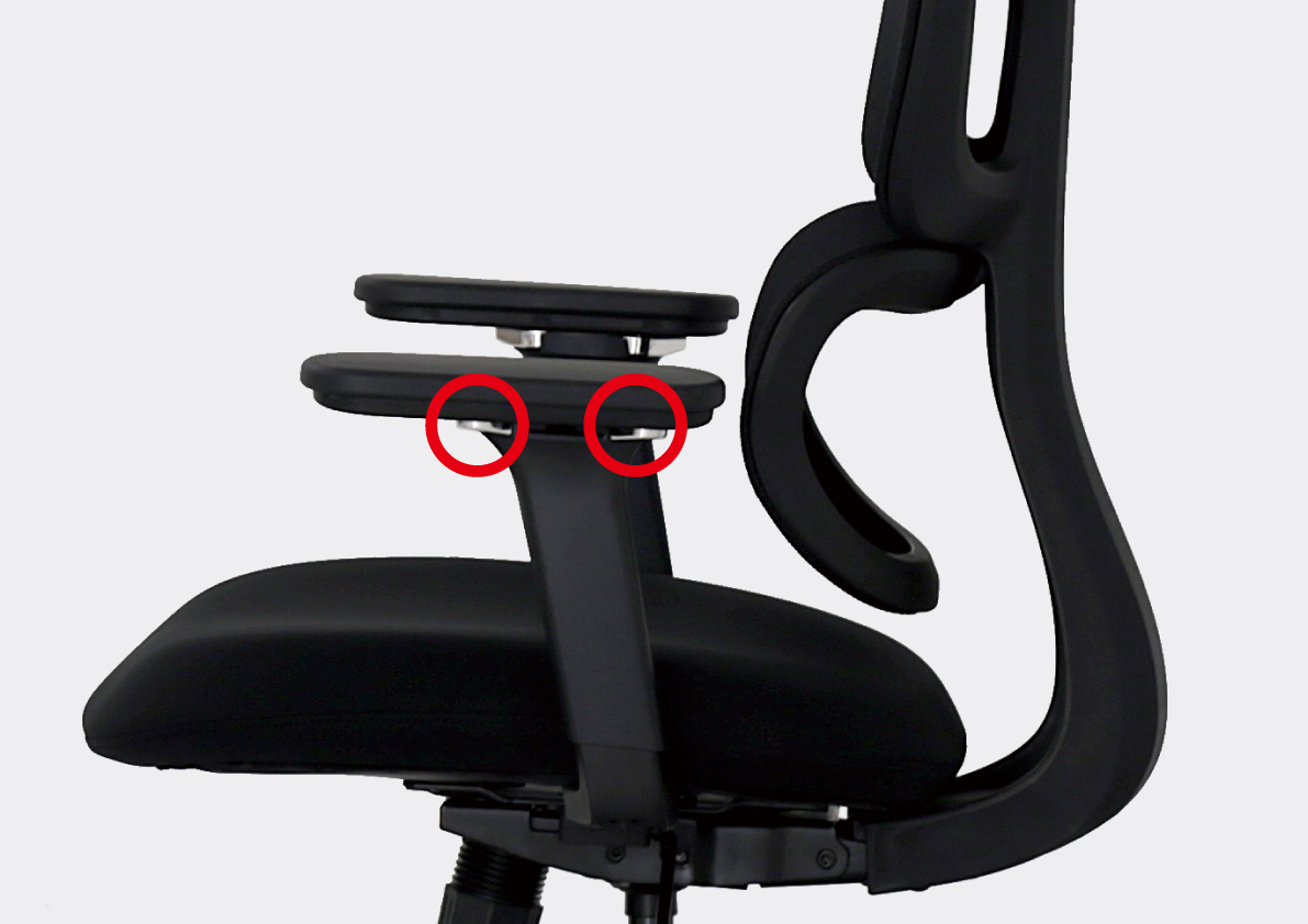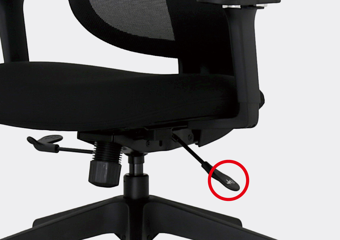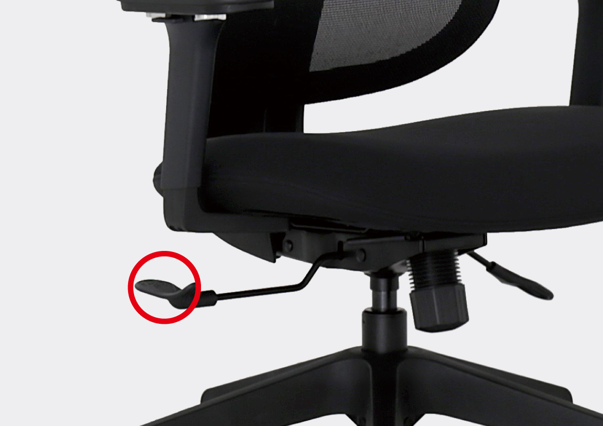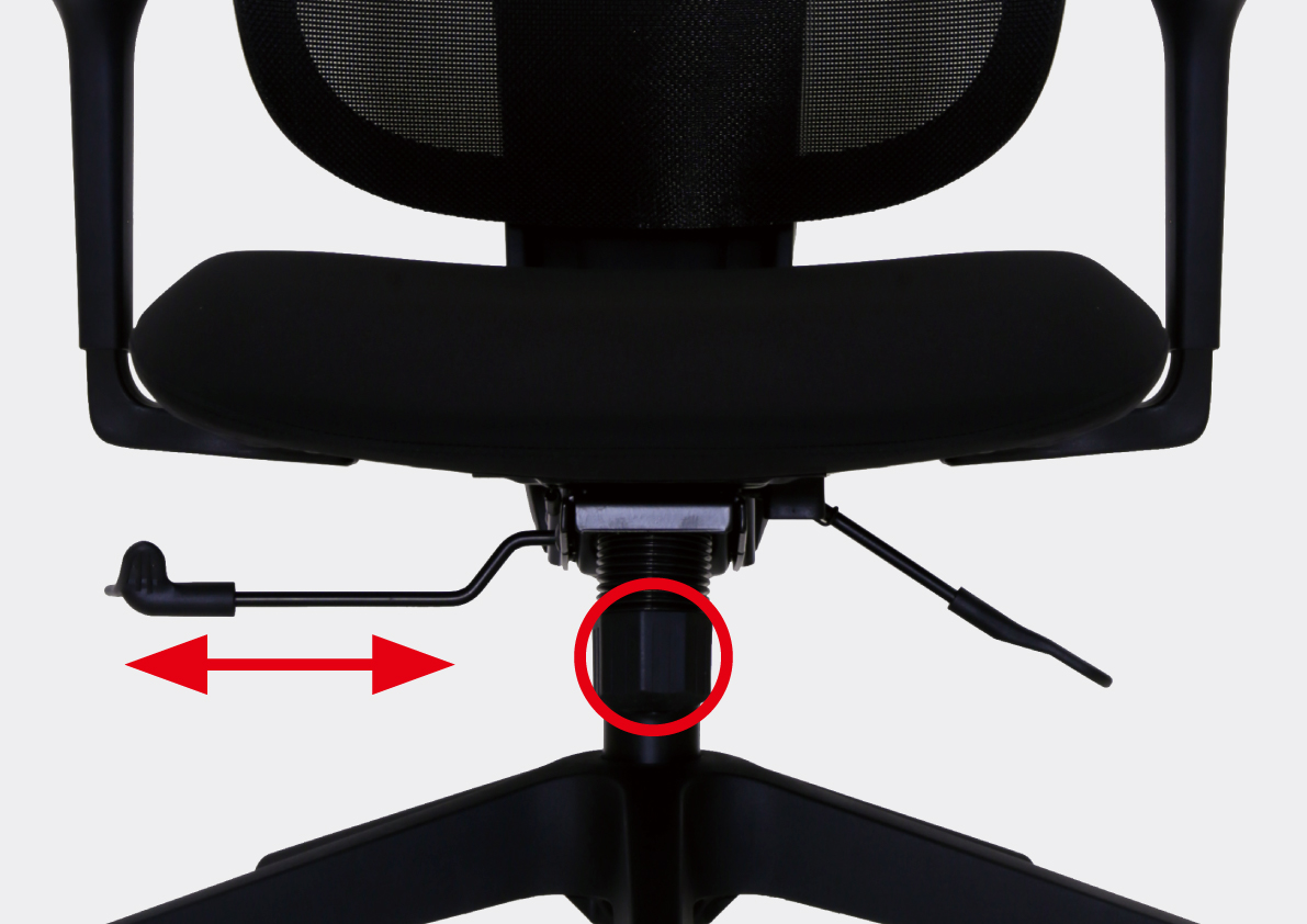 右側後のレバーで425-510mmの高さで昇降しお好みの座面高さに調節できます。