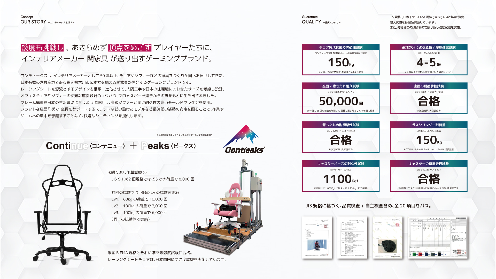 ANSI(米国国家規格協会)が認定したアメリカのBIFMA基準の試験をクリア