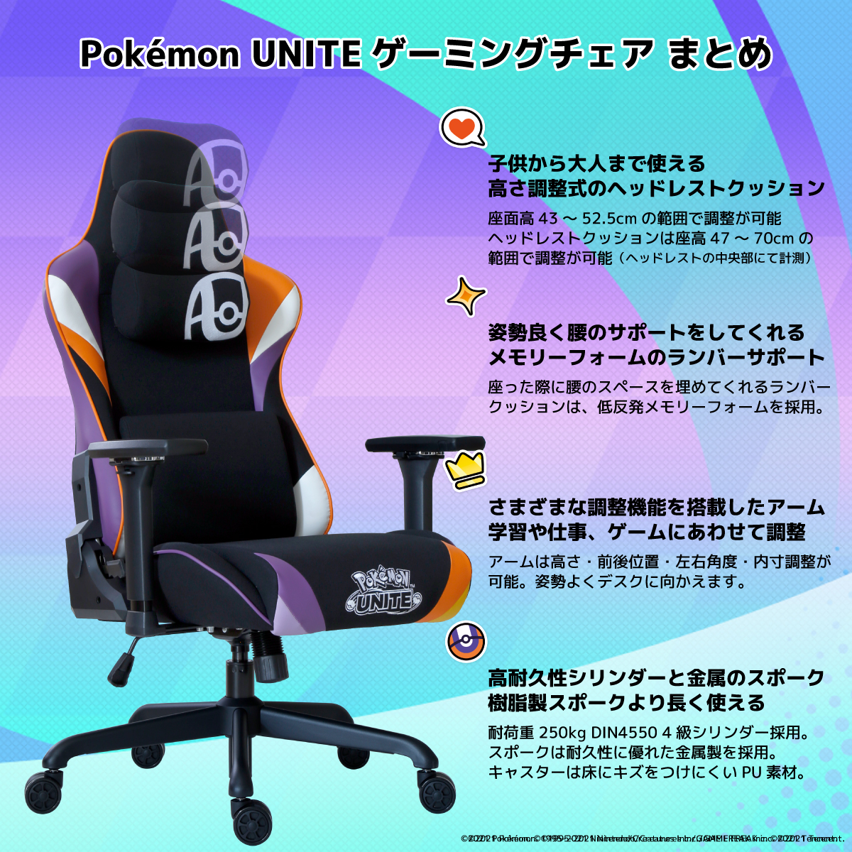 配信時や長時間使用した際、リクライニング部品のキシミ音がマイクに入り問題になる課題を緩和するためにギアとスプリングの機能を左右分離させた静音金具を独自に採用。