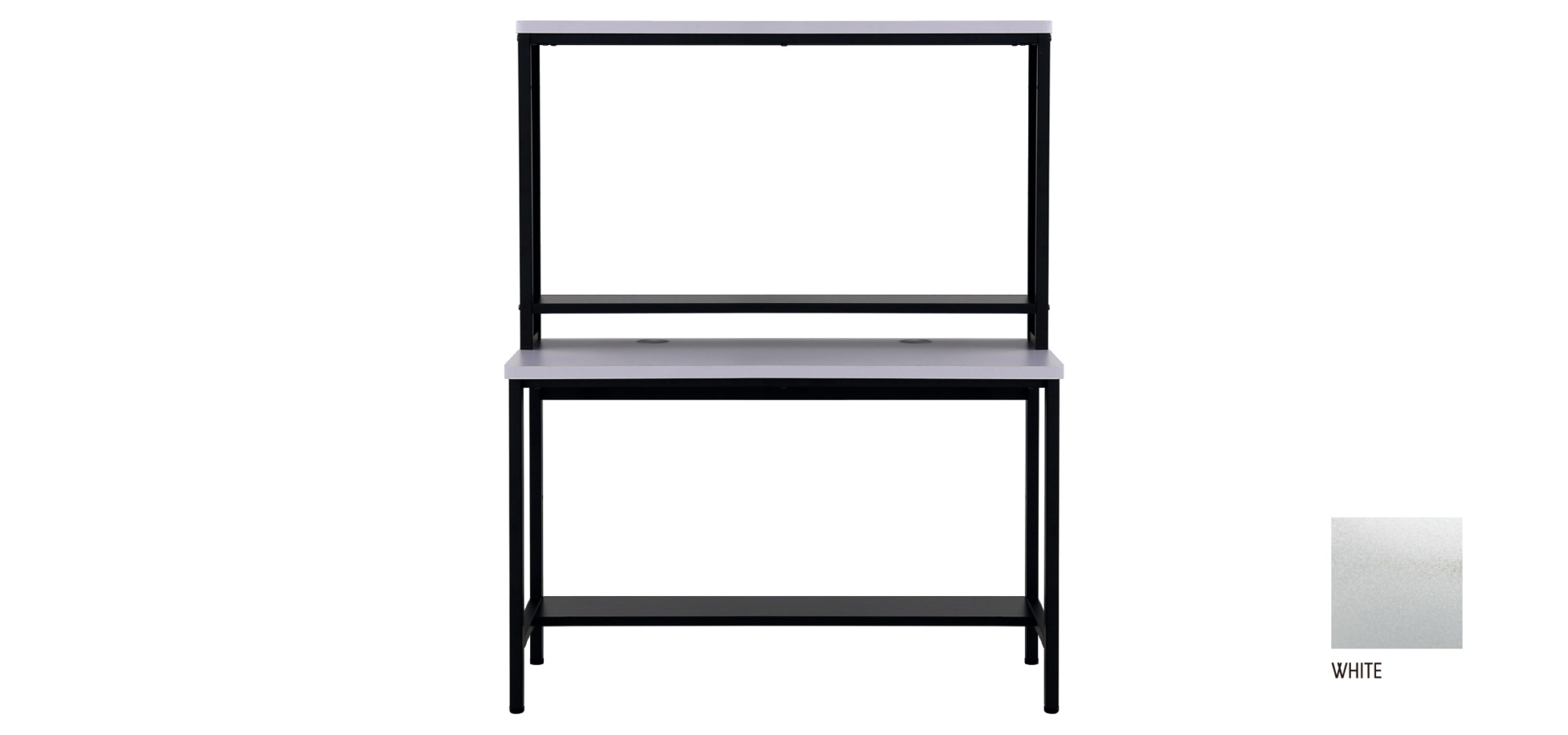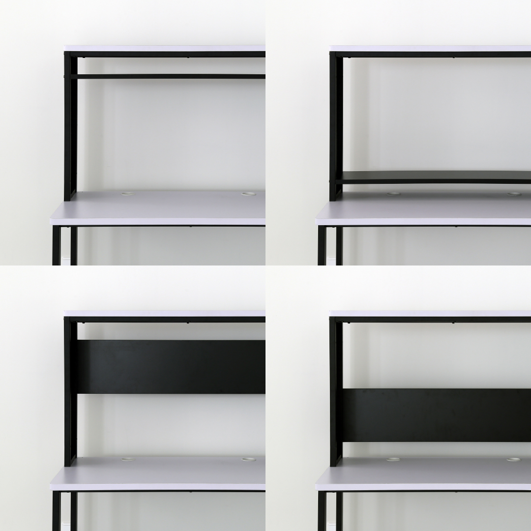 ラックとデスクのスチール棚板は、使用しない場合、垂直に取り付けしバックパネルにすることもできます。