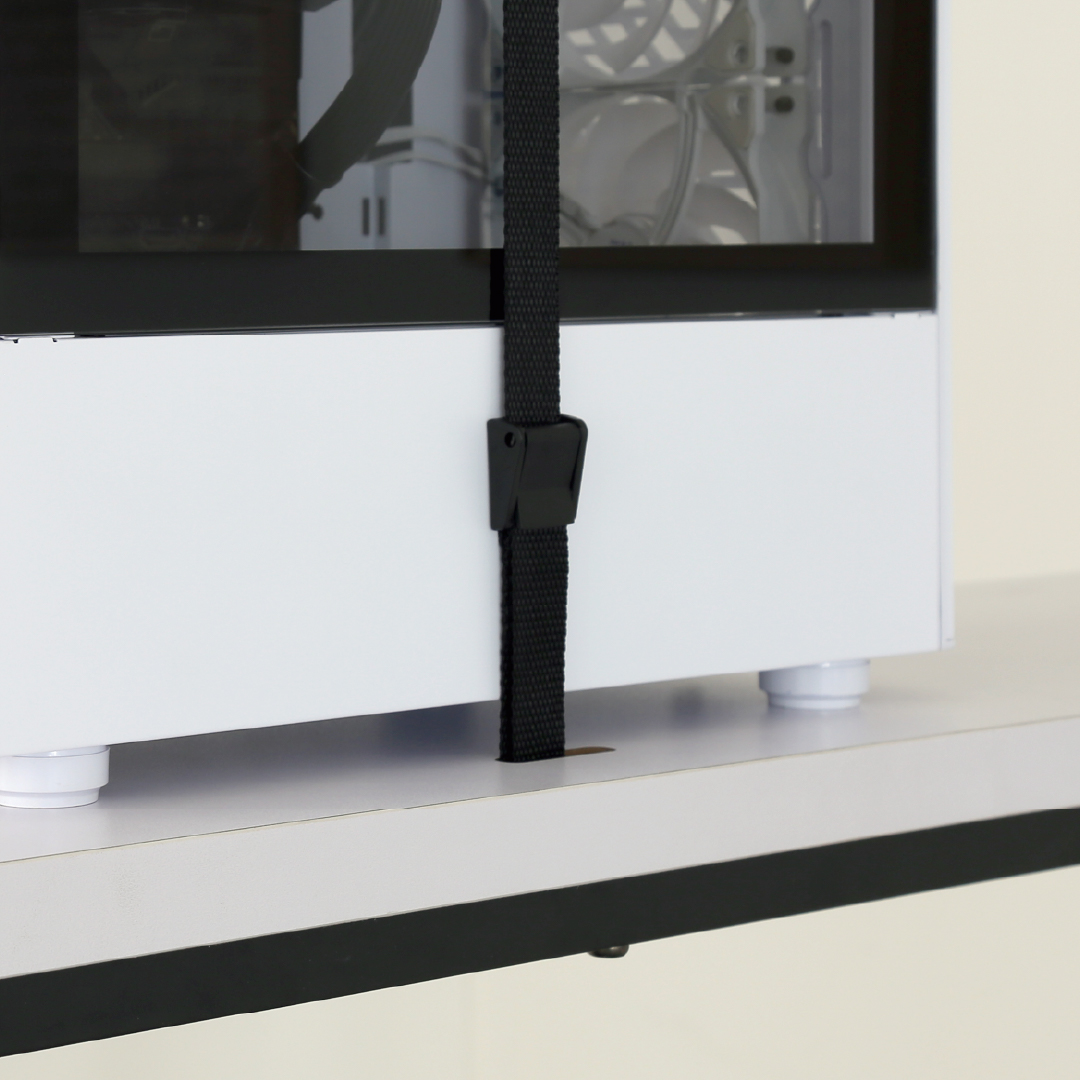 地震などでのパソコンの転倒や落下を未然に防ぐことができます。幅35mmまでのベルトに対応しています。