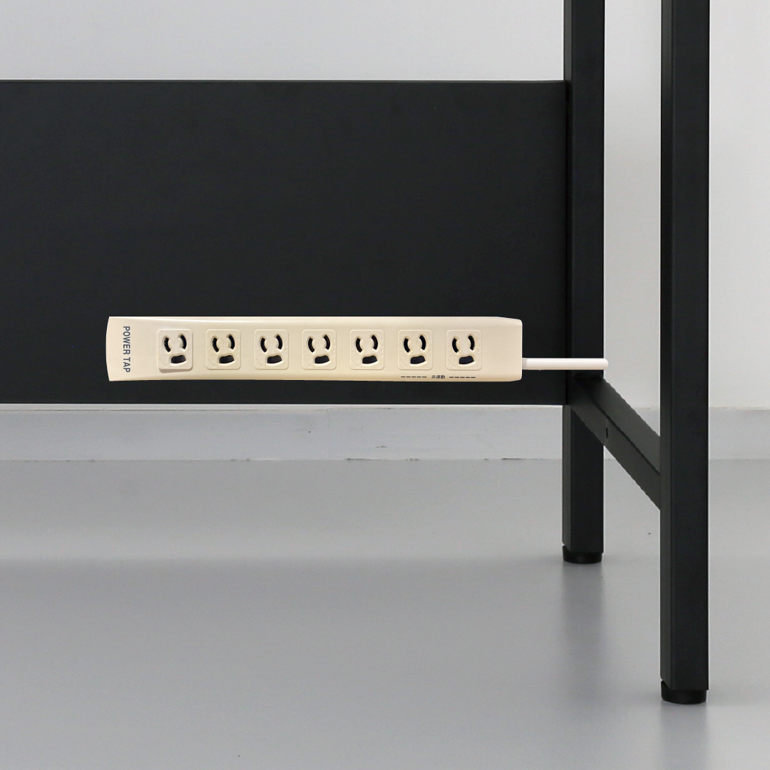 デスク足元のパネルをバックパネルにすることでマグネット式の電源タップが取り付けることができます。