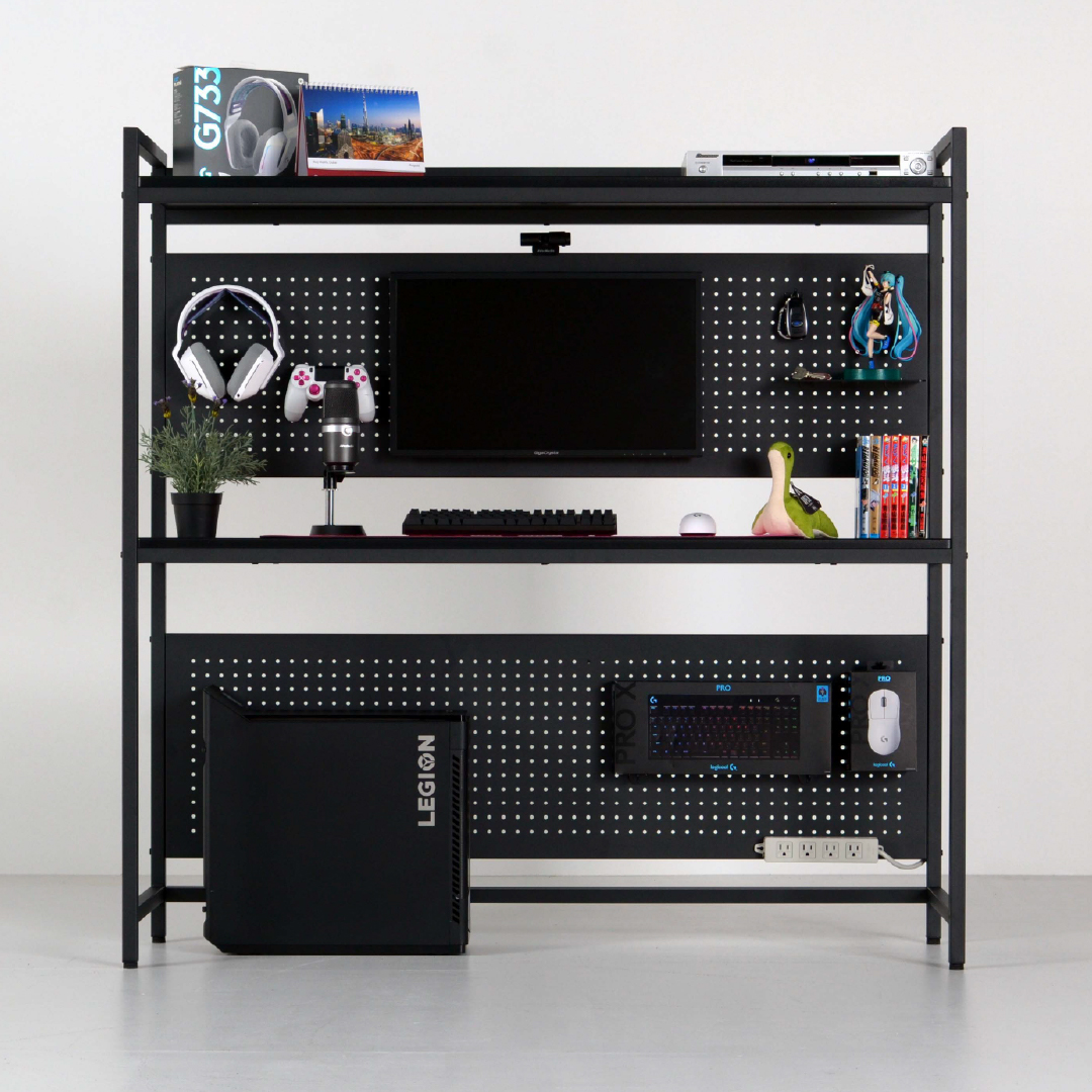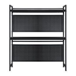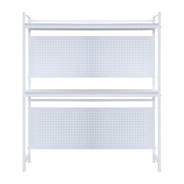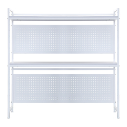 有孔スチール棚板は、バックパネルとして垂直に取り付けて、有孔ボードのように使用することもできます。