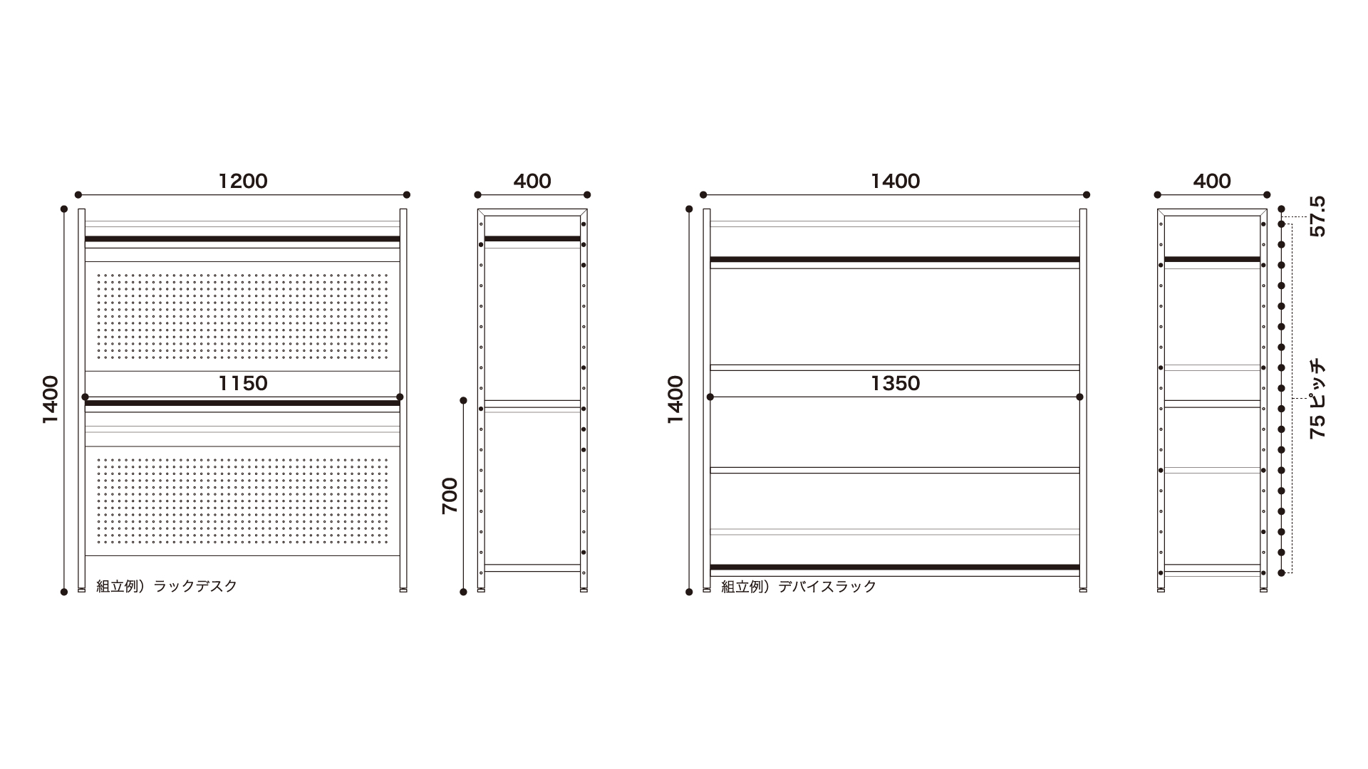 | ラック寸法 | W1200×D400×H1400mm W1400×D400×H1400mm |