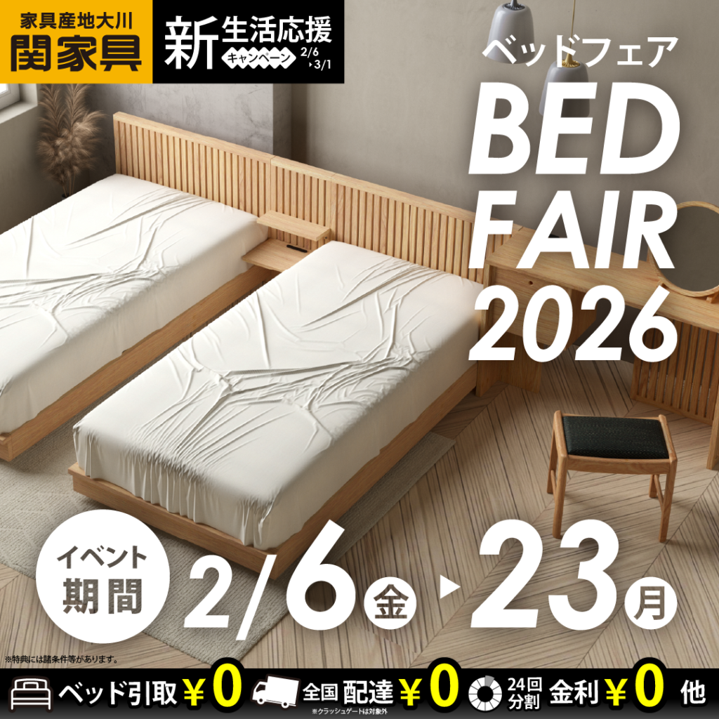 関家具大川本店にて「ベッドフェア2026」を開催いたします。