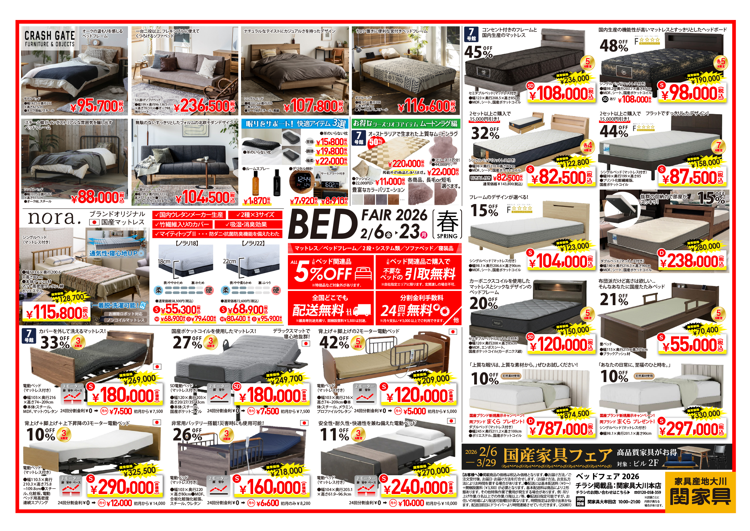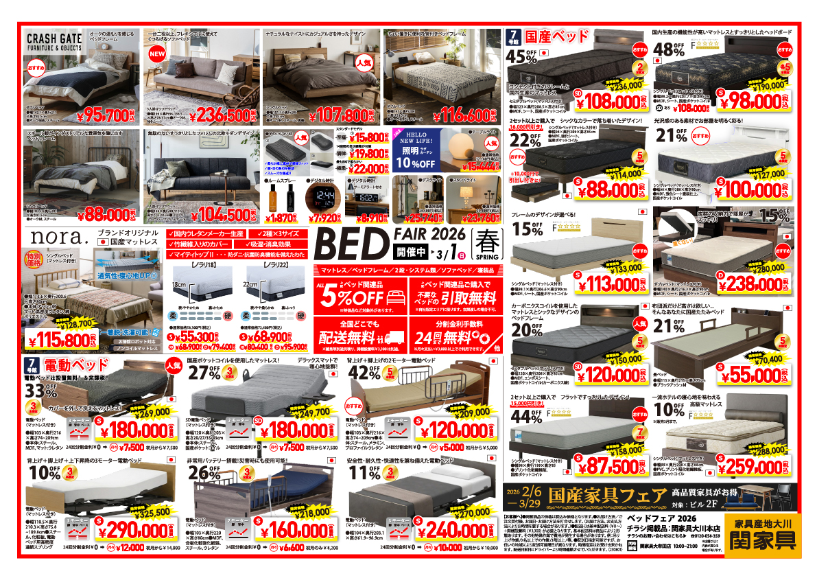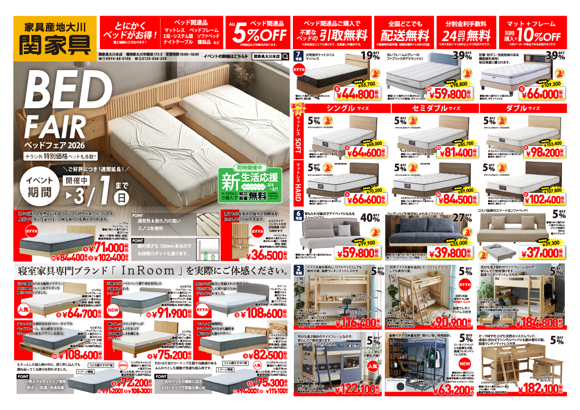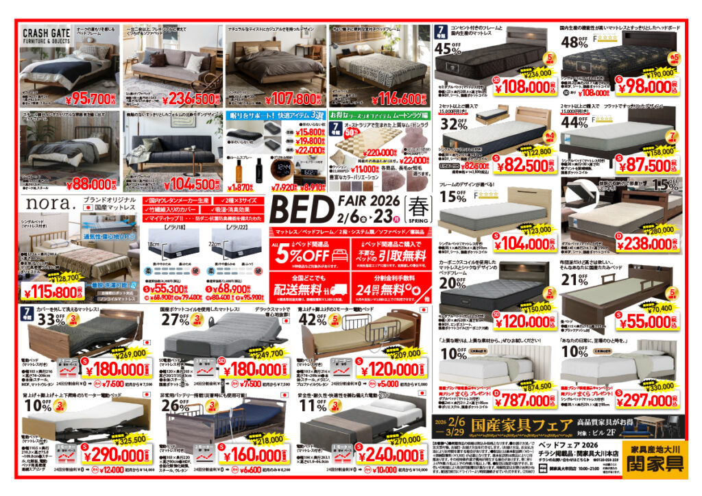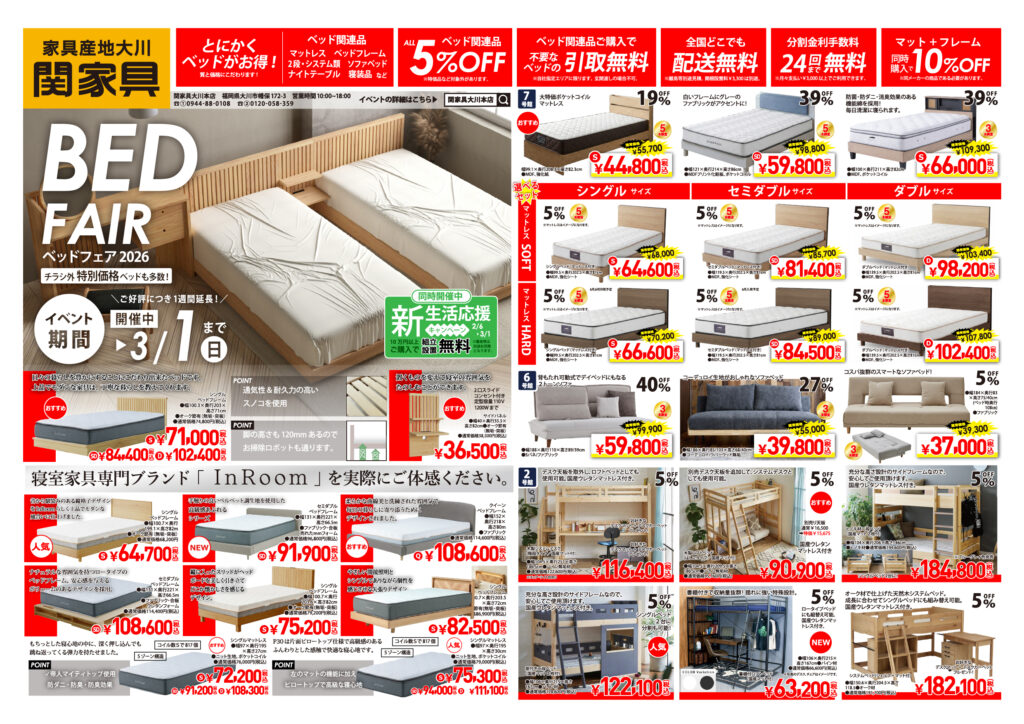 関家具大川本店にて「ベッドフェア2026」を開催いたします。